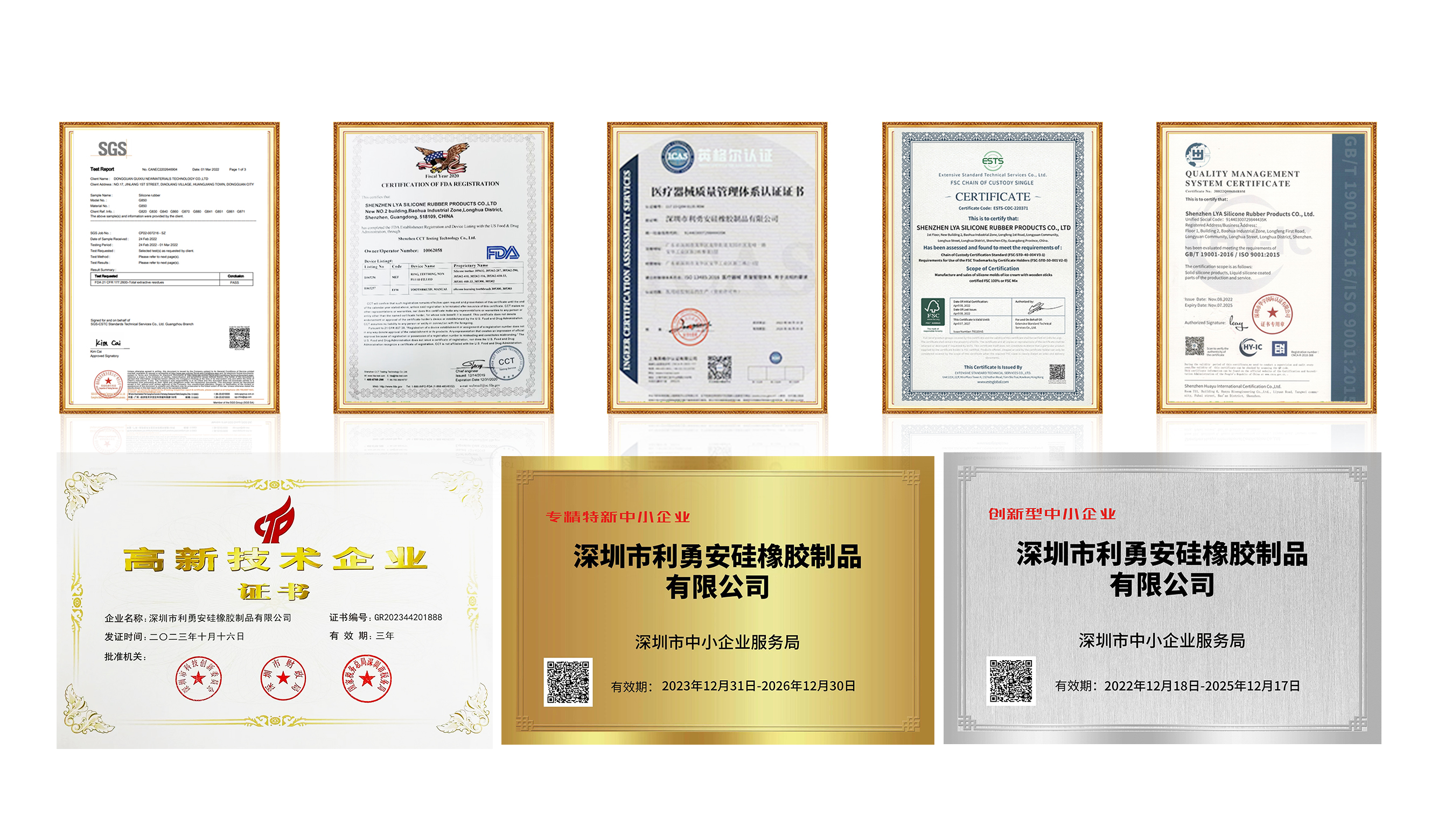 上述資質(zhì)與認證的全面覆蓋,不僅構(gòu)建了利勇安從材料管控、生產(chǎn)標準到市場準入的全鏈條競爭力,更成為其深耕高端硅膠制品領域、賦能全球客戶的堅實背書。