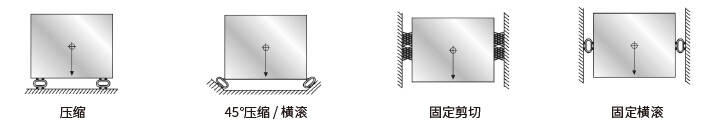 穩(wěn)定器用于控制高大支撐體的變形。當(dāng)其高度等于2倍的寬度或深度尺寸時(shí),推薦使用穩(wěn)定器。在大多數(shù)應(yīng)用場合,穩(wěn)定器的數(shù)量應(yīng)為基本隔振器的一半,并且應(yīng)選擇一種比基本隔振器更柔軟的型號。穩(wěn)定器一般安裝在側(cè)面。